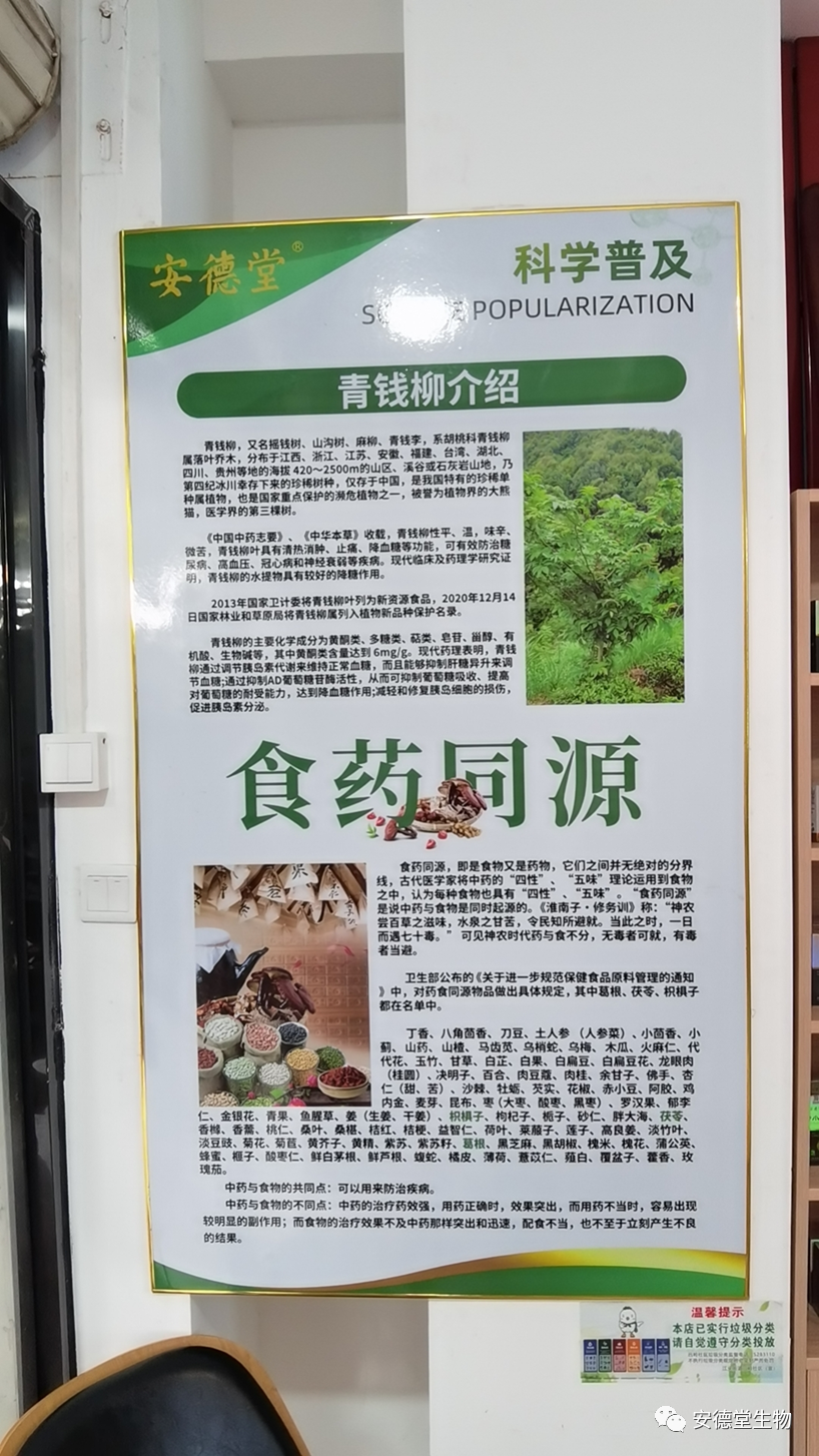 店内还张贴了安德堂的公司介绍、食药同源科普知识、产品的原材料及作用,全方位展示安德堂健康产品 “植物精华活性肽、食药同源安德堂”的深刻内涵。