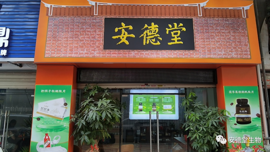 店内正堂展示安德堂3款产品的大幅图片及简要说明,向消费者简明扼要地展示产品的作用,温馨而又实用,拉近与安德堂与消费者之间的距离。